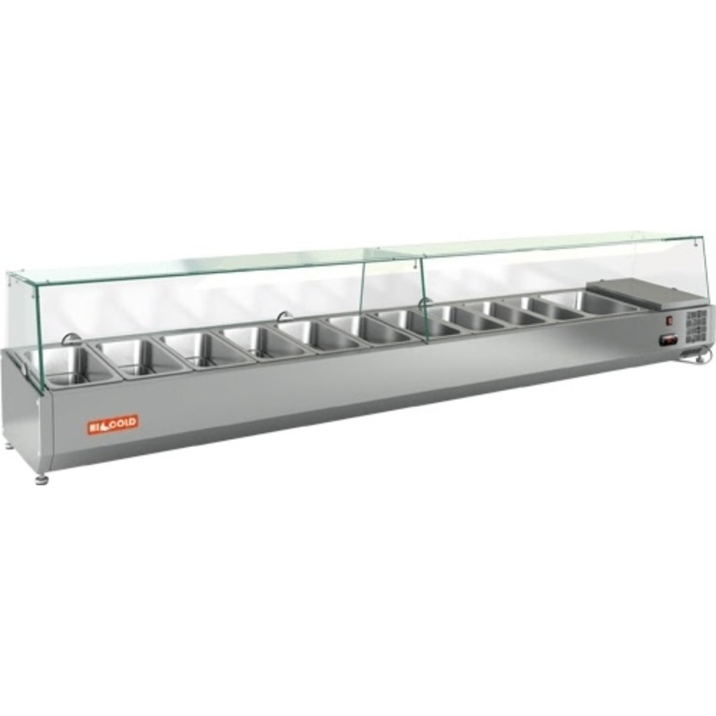 Каталог оборудования Холодильное оборудованиеВитрины для ингредиентовВитрина холодильная для ингредиентов HICOLD VRTG 2360 1/3 Витрина холодильная для ингредиентов HICOLD VRTG 2360 1/3 Код товара: 064-449 Поделиться: WhatsAppTelegram СравнитьДобавить в КПВ избранное 0 89 847 ₽ В корзину 0 шт Под заказСамовывоз сегодня бесплатно Взять в кредит Купить в лизинг Получить консультацию в WhatsApp Описание Характеристики Отзывы 0 Инструкции 2 Витрина холодильная для ингредиентов HICOLD VRTG 2360 1/3 предназначена для охлаждения, кратковременного хранения и наглядной демонстрации ингредиентов, салатов и готовых блюд на предприятиях общественного питания и в торговых точках. Гастроёмкости в комплект не входят, приобретаются отдельно. Основные особенности: Корпус выполнен из нержавеющей стали, обеспечивая долговечность и легкость в уходе; Электронная панель управления для точной настройки температуры; Модель с надстройкой из стекла (исполнение G) для удобной демонстрации продуктов; Высота витрины — 225 мм, высота стеклянной надстройки — 205 мм; Вместимость: 10 гастроёмкостей GN1/3 + 1 гастроёмкость GN1/2; Опорные ножки для устойчивой установки на столешнице. HICOLD VRTG 2360 1/3 — компактная и функциональная настольная витрина, идеально подходящая для демонстрации и кратковременного хранения продуктов на профессиональной кухне или в торговой зоне.Изображение товара, представленного на фото, может отличаться от его фактического вида. Показать все Габаритные размеры2360×385×459 ммДиапазон рабочей температурыот +2 до +7 °CДлина2360 ммГлубина385 ммВысота459 ммТип крышкиСтеклянная Гастроемкостей11 штТип гастроемкостейGN1/3, GN1/2 Мощность0,15 ВтНапряжение220 ВТип охлажденияСтатическое Материал изготовленияНержавеющая сталь ХладагентR134 Вес нетто67 кгВес брутто107 кгТип оттайкиРучная Габариты в упаковке2460×485×559 ммБрендHicold Оставить отзыв Еще никто не оставил отзыв на этот товар Инструкция на HICOLD VRTG 2360.pdfДекларация о соответствии.pdf Похожие товары Перейти в каталог В наличии 46 639 ₽ Витрина холодильная для ингредиентов TEFCOLD VK33-120 S/S LID Под заказ 48 711 ₽ Витрина холодильная для ингредиентов Tatra TVR1500-7GN1/4 Под заказ 59 501 ₽ Витрина для ингредиентов Carboma A40 SM 1,2 (3 GN 1/3 + 1 GN 1/2) с крышкой В наличии 39 646 ₽ Витрина холодильная для ингредиентов Cooleq VRX 1500/380 Под заказ 60 350 ₽ Витрина для ингредиентов Polair VT2v-G (1/3) с подсветкой и защитным колпаком Под заказ 57 016 ₽ Витрина холодильная для ингредиентов HICOLD VRTU 1915 1/4 Под заказ 66 844 ₽ Витрина холодильная для ингредиентов HICOLD VRTG 1525 1/3 Под заказ 68 518 ₽ Витрина холодильная для ингредиентов HICOLD VRTG 1915 к PZ4 (1/4) С этим товаром покупают В наличии 340 218 ₽ Шкаф холодильный Tatra TBT 1121 C В наличии 122 323 ₽ Шкаф холодильный универсальный МХМ ШХСн 0,80 М В наличии 126 000 ₽ Шкаф морозильный Полюс Carboma F560 В наличии 82 755 ₽ Шкаф холодильный универсальный Arkto V0.5-SD Под заказ 149 670 ₽ Шкаф морозильный Abat ШХн-0,7-01 нерж. В наличии 66 868 ₽ Шкаф холодильный HURAKAN HKN-RCS400 В наличии 208 283 ₽ Шкаф морозильный с глухой дверью TEFCOLD BF850 нержавеющий под противни 600Х400/800ММ В наличии 63 864 ₽ Шкаф холодильный МХМ Капри 0,5М Ранее просмотрено В наличии 58 095 ₽ Витрина холодильная для ингредиентов HICOLD VRTU 1835 1/3 Под заказ 64 791 ₽ Витрина холодильная для ингредиентов HICOLD VRX 1500 1/3