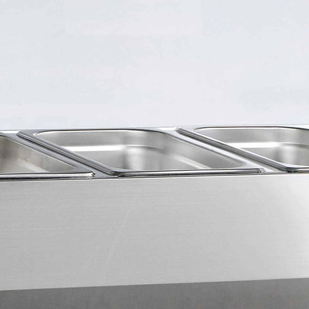 Каталог оборудования Холодильное оборудованиеВитрины для ингредиентовВитрина холодильная для ингредиентов TEFCOLD VK38-160 Витрина холодильная для ингредиентов TEFCOLD VK38-160 Код товара: 067-496 Поделиться: WhatsAppTelegram СравнитьДобавить в КПВ избранное 0 95 391 ₽ В корзину 0 шт В наличииСамовывоз сегодня бесплатно Взять в кредит Купить в лизинг Получить консультацию в WhatsApp Описание Характеристики Отзывы 0 Витрина холодильная для ингредиентов TEFCOLD VK38-160 предназначена для кратковременного хранения и демонстрации салатов, мясных и рыбных закусок, а также ингредиентов на предприятиях общественного питания и торговли. Корпус и внутренняя обшивка выполнены из нержавеющей стали, обеспечивая долговечность и легкость очистки. Гастроемкости в комплект не входят. Особенности: Статическое охлаждение — равномерное поддержание температуры для деликатных продуктов. Механическое размораживание — надежное удаление наледи без вмешательства пользователя. Хладагент R600a — экологичный и энергоэффективный. Электронный термостат и градусник — точная настройка и контроль температуры. Гнутый стеклянный колпак — обеспечивает обзор продукции и защиту от внешних воздействий. Регулируемые ножки — удобная установка и устойчивость на неровной поверхности. Климатический класс 4 — работа при температуре окружающей среды до +32°C. Вместимость — 6×GN 1/3 глубиной 150 мм, удобно для салатов и закусок. Перегородки — 5 длинных и 4 коротких для удобного разделения продуктов. Уровень шума — 47 дБ, почти бесшумная работа. Хладагент — 0,04 кг, эффективное охлаждение при минимальном расходе. Внутренние размеры — 1245×305×155 мм, компактное размещение емкостей. TEFCOLD VK33-160 — надежная и компактная витрина для демонстрации и кратковременного хранения продуктов с безопасным поддержанием температуры.Изображение товара, представленного на фото, может отличаться от его фактического вида. Показать все Габаритные размеры1600×395×435 ммДиапазон рабочей температурыот +2 до +10 °CДлина1600 ммГлубина395 ммВысота435 ммТип крышкиСтеклянная Гастроемкостей7 штТип гастроемкостейGN 1/3 Мощность0,112 ВтТип охлажденияСтатическое Уровень шума47 дБКлиматический класс4 ХладагентR600a Вес нетто56 кгВес брутто61 кгТип оттайкиРучная Габариты в упаковке1680×440×310 ммБрендTefcold Оставить отзыв Еще никто не оставил отзыв на этот товар Похожие товары Перейти в каталог В наличии 66 196 ₽ Витрина холодильная для ингредиентов HICOLD VRTG 1485 1/3 Под заказ 64 792 ₽ Витрина холодильная для ингредиентов HICOLD VRX 1500 1/3 С этим товаром покупают Под заказ 126 495 ₽ Стол холодильный среднетемпературный Carboma T70 M3-1-G 9006 (3GNG/NT Полюс) В наличии 41 718 ₽ Льдогенератор HURAKAN HKN-IMC25 (кубики) В наличии 66 070 ₽ Шкаф холодильный МХМ Капри П-390М Ранее просмотрено В наличии 129 526 ₽ Ларь морозильный TEFCOLD FR505S SL крышка нерж.