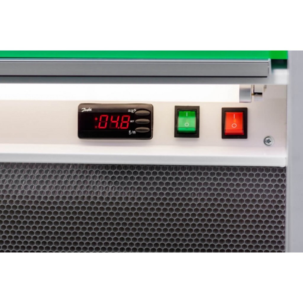 Каталог оборудования Холодильное оборудованиеГорки холодильныеГорка холодильная Север МАНГО 2200/970 ВХСнп-1875 пресервы Горка холодильная Север МАНГО 2200/970 ВХСнп-1875 пресервы Код товара: 065-964 Поделиться: WhatsAppTelegram СравнитьДобавить в КПВ избранное 0 171 353 ₽ В корзину 0 шт В наличииСамовывоз сегодня бесплатно Взять в кредит Купить в лизинг Получить консультацию в WhatsApp Описание Характеристики Отзывы 0 Горка холодильная Север МАНГО 2200/970 ВХСнп-1875 пресервы разработана для эффективной демонстрации, хранения и продажи пресервов, морепродуктов и другой рыбной продукции в магазинах, супермаркетах и торговых залах. Она сочетает удобство выкладки, поддержание оптимальной температуры и привлекательное оформление витрины, привлекая внимание покупателей и облегчая работу персонала. Особенности модели: Поставляется без боковин, что упрощает доступ и позволяет использовать оборудование в составе линии. Верхняя полка оснащена зеркалом для лучшей визуальной презентации продукции. Пять рядов полок длиной 500 мм можно регулировать по наклону для удобного расположения товара. Прозрачные ограждения из оргстекла обеспечивают аккуратную выкладку и защиту продуктов. Белые пластиковые ценникодержатели упрощают маркировку и информирование покупателей. Привлекательный внешний вид обеспечивают цветные алюминиевые панели и встроенная верхняя подсветка. Ванна выполнена из антикоррозийного пластика, что повышает срок службы оборудования. Ночные шторки с быстросъёмным креплением помогают сохранять температуру и экономить электроэнергию в нерабочее время. Встроены вентиляторы EBM-Papst с двумя скоростями, контроллеры Danfoss / Carel, механический ТРВ. Автоматическая система оттайки поддерживает стабильную работу. Для удобства обслуживания предусмотрен клапан заправки, шкаф управления с быстрым доступом и комплект подключения к системе дренажа. Модель Север МАНГО 2200/970 ВХСнп-1875 сочетает функциональность и надёжность. Она создана для торговли пресервами и рыбными продуктами, обеспечивая выгодную подачу товара, удобство эксплуатации и долгий срок службы.Серия Север МангоИзображение товара, представленного на фото, может отличаться от его фактического вида. Показать все Габаритные размеры1875×970×2200 ммДиапазон рабочей температурыот -3 до +3 °CДлина1875 ммГлубина970 ммВысота2200 ммТип горкиГастрономическая Тип двериБез двери Глубина выкладки660 ммПлощадь выкладки5,92 м²Макс. нагрузка на полку160 кг/м2Полезный объем2,1 м3Расход электроэнергии в сутки4 кВтПодсветкаЕсть ХолодообеспечениеВыносное Напряжение220 ВХолодопроизводительность2750 ВтТип охлажденияДинамическое Тип оттайкиТЭН Количество полок5 штХладагентR404A БрендСеверВсе открытые холодильные горкиВсе холодильные горки с выносным агрегатом Оставить отзыв Еще никто не оставил отзыв на этот товар Похожие товары Перейти в каталог Цена по запросу Горка холодильная Иней Lida-Stella 1,3/0,95 С этим товаром покупают 110 970 ₽ Витрина холодильная Carboma GС95 ВХСр-1,5 (GС95 SV 1,5-1) 124 536 ₽ Шкаф холодильный МХМ Капри 1,12СК купе 135 500 ₽ Ларь-бонета морозильная МХМ Корсика ЛХН-2500 Ранее просмотрено 208 774 ₽ Горка холодильная Север МАНГО 2200/970 ВХСнп-2500 пресервы Популярные товары 2 742 494 ₽ Печь подовая с подставкой без направляющих Apach Bakery Line E4K2L DP 95 400 ₽ 5 / 1 Витрина холодильная Полюс ВХСр-1,2 (G95 SV 1,2-1) 212 768 ₽ Шкаф тепловой UNOX XEVSC-0711-CRM