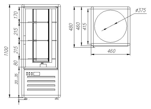 Диаметр каждой полки: 375 мм – оптимально для выкладки тортов, пирожных, выпечки;