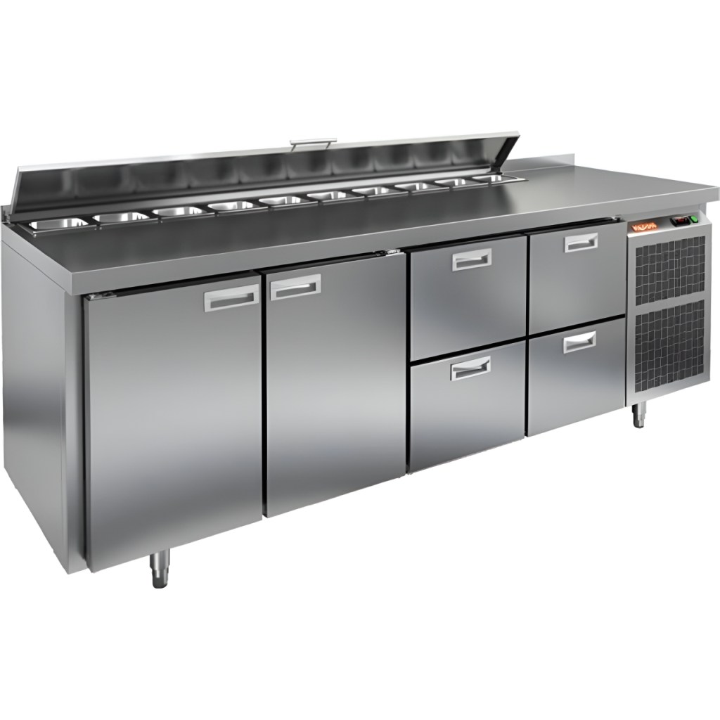 Каталог оборудования Холодильное оборудованиеСтолы охлаждаемыеСтолы холодильные для салатовСтол холодильный для салатов HiCold SL1-332GN (1/3) с крышкой Стол холодильный для салатов HiCold SL1-332GN (1/3) с крышкой Код товара: 064-851 Поделиться: WhatsAppTelegram СравнитьДобавить в КПВ избранное 0 290 692 ₽ В корзину 0 шт Под заказСамовывоз сегодня бесплатно Взять в кредит Купить в лизинг Получить консультацию в WhatsApp Описание Характеристики Отзывы 0 Инструкции 1 Стол холодильный для салатов HiCold SL1-332GN (1/3) предназначен для использования на предприятиях общественного питания и торговли. Он объединяет рабочую поверхность и охлаждаемый отсек, что делает его удобным решением для хранения, охлаждения и подготовки ингредиентов при приготовлении салатов, пиццы и других блюд. Такая конструкция позволяет повару работать быстрее и эффективнее, так как все необходимые продукты находятся под рукой. Корпус и столешница выполнены из прочной нержавеющей стали, устойчивой к коррозии и легко поддающейся санитарной обработке. Металлическая крышка защищает продукты от загрязнений и сохраняет их свежесть. Особенности модели: Электронная панель управления — точная настройка температурного режима. 8 выдвижных ящика — быстрое размещение и замена продуктов. Вместимость салат-бара — до 8 гастроемкостей глубиной до 100 мм. Автоматические доводчики — комфорт при загрузке/выгрузке. Легкозаменяемые магнитные уплотнители — надежная герметичность. Открытая агрегатная часть — быстрый доступ для обслуживания. Регулируемые по высоте ножки — устойчивость даже на неровном полу. Толщина столешницы, борта и теплоизоляции — 50 мм, что обеспечивает прочность и энергоэффективность конструкции. HiCold SL1-332GN (1/3) — практичное и удобное решение для профессиональной кухни, обеспечивающее удобную подготовку и хранение ингредиентов.Изображение товара, представленного на фото, может отличаться от его фактического вида. Показать все Габаритные размеры1835×700×850 ммДиапазон рабочей температурыот +2 до +10 °CРасположение агрегатаБоковое Материал столешницыНержавеющая Тип столаС дверьми и ящиками Тип двериГлухая Объём505 лКоличество дверей2 штТип гастроемкостейGN 1/3 Количество ящиков6 штРазмер полки530×325 ммНапряжение220 ВМощность0,46 кВтТип охлажденияДинамическое Тип оттайкиАвтоматическая СтолешницаС бортом Габариты в упаковке2000×850×1000 ммВес нетто120 кгВес брутто140 кгБрендHicold Оставить отзыв Еще никто не оставил отзыв на этот товар Декларация о соответствии.pdf Ранее просмотрено Под заказ 167 482 ₽ Стол холодильный для салатов HiCold SL2-111GN (1/6) О с крышкой Под заказ 140 032 ₽ Стол холодильный для салатов HiCold SL2-11SN (1/6) без крышки
