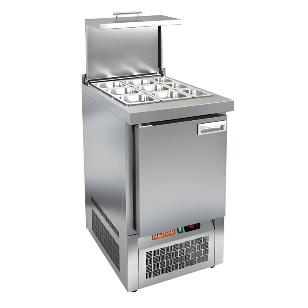 Каталог оборудования Холодильное оборудованиеСтолы охлаждаемыеСтолы холодильные для салатовСтол холодильный для салатов HiCold SLE3-1GN с крышкой Стол холодильный для салатов HiCold SLE3-1GN с крышкой Код товара: 064-942 Поделиться: WhatsAppTelegram СравнитьДобавить в КПВ избранное 0 100 432 ₽ В корзину 0 шт Под заказСамовывоз сегодня бесплатно Взять в кредит Купить в лизинг Получить консультацию в WhatsApp Описание Характеристики Отзывы 0 Инструкции 2 Стол холодильный для салатов HiCold SLE3-1GN с крышкой предназначен для охлаждения и кратковременного хранения ингредиентов, используемых при приготовлении салатов, закусок, сэндвичей и других блюд. Он широко применяется на предприятиях общественного питания и торговли. Модель объединяет в себе рабочую поверхность и охлаждаемый отсек, обеспечивая удобство, экономию места и быстрое взаимодействие с ингредиентами в процессе приготовления. Корпус и столешница изготовлены из нержавеющей стали, что гарантирует долговечность конструкции, устойчивость к коррозии и соответствие санитарным нормам. Металлическая крышка защищает продукты от загрязнений и сохраняет их свежесть. Особенности модели: Электронная панель управления — для точной настройки температуры Вместительная внутренняя полка формата GN 1/1 — для хранения различных продуктов Вместимость салат-бара: 6 гастроемкостей GN 1/6 и 3 GN 1/9 Поддержка гастроемкостей глубиной до 100 мм Автоматические доводчики дверей с фиксацией открытого положения Легкозаменяемые магнитные уплотнители — поддерживают герметичность Открытая агрегатная часть — упрощает техническое обслуживание Регулируемые по высоте ножки — для устойчивой установки Столешница толщиной 50 мм Борт высотой 50 мм Эффективная теплоизоляция — 50 мм HiCold SLE3-1GN с крышкой — компактный и функциональный салатный стол, который сочетает охлаждение и удобное рабочее пространство. Подходит для профессиональных кухонь, обеспечивая быстрый доступ к ингредиентам и оптимальные условия их хранения.Изображение товара, представленного на фото, может отличаться от его фактического вида. Показать все Габаритные размеры565×700×850 ммДиапазон рабочей температурыот +2 до +10 °CРасположение агрегатаНижнее Материал столешницыНержавеющая Тип столаС дверьми Тип двериГлухая Объём110 лКоличество дверей1 штТип гастроемкостейGN 1/9, GN 1/6 Размер полки530×325 ммНапряжение220 ВМощность0,15 кВтТип охлажденияДинамическое Тип оттайкиАвтоматическая СтолешницаС бортом Вес нетто58 кгВес брутто95 кгБрендHicold Оставить отзыв Еще никто не оставил отзыв на этот товар Паспорт на HICOLD SLE3-1GN.pdfДекларация о соответствии.pdf Ранее просмотрено Под заказ 15 334 ₽ Ванна моечная МХМ М-1-0,4-0,63/1,21 (AISI 430, t=0,6)