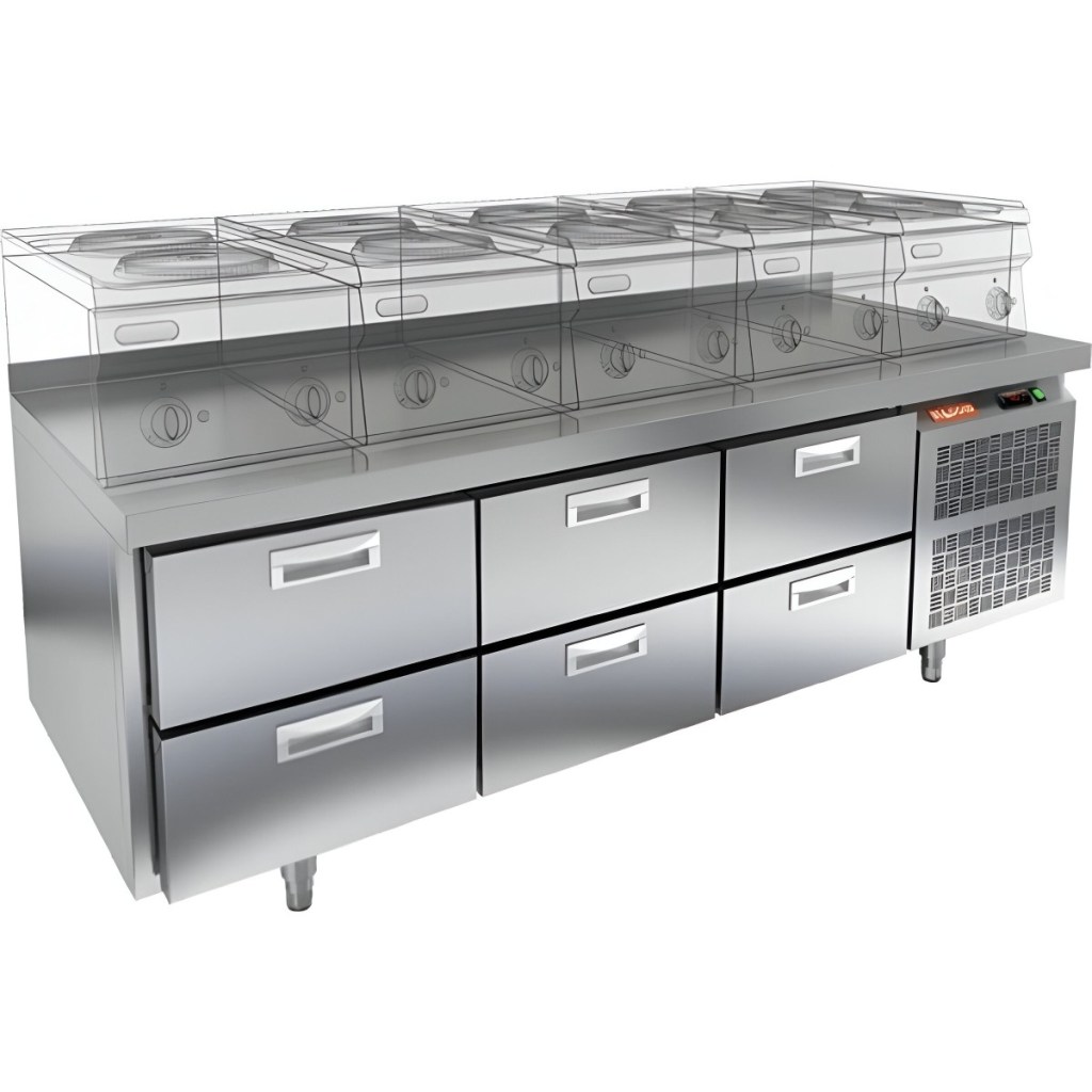 Каталог оборудования Холодильное оборудованиеСтолы охлаждаемыеСтолы холодильные под тепловое оборудованиеСтол охлаждаемый HiCold GN 222/TN LT SH О под тепловое оборудование Стол охлаждаемый HiCold GN 222/TN LT SH О под тепловое оборудование Код товара: 065-448 Поделиться: WhatsAppTelegram СравнитьДобавить в КПВ избранное 0 222 292 ₽ В корзину 0 шт Под заказСамовывоз сегодня бесплатно Взять в кредит Купить в лизинг Получить консультацию в WhatsApp Описание Характеристики Отзывы 0 Инструкции 2 Стол охлаждаемый HiCold GN 222/TN LT SH О под тепловое оборудование предназначен для обработки продуктов и временного хранения скоропортящихся ингредиентов и напитков на предприятиях общественного питания и торговли. Устройство совмещает функции холодильной камеры и рабочей поверхности, что делает его особенно удобным для профессиональных кухонь. Столешница рассчитана на установку теплового оборудования: под рабочей поверхностью встроен ДСП-лист, который укрепляет конструкцию и препятствует проникновению тепла внутрь. Такое решение обеспечивает дополнительную жесткость, позволяет рационально использовать рабочее пространство и повышает эффективность работы на кухне. Внимание! На фото показан стол с бортом. Данная модель поставляется без борта. Особенности: 6 выдвижных ящиков обеспечивают удобный доступ к продуктам и рациональную организацию пространства Автоматические доводчики дверей с фиксатором открытого положения улучшают эргономику работы и помогают сохранить холод внутри камеры. Легкозаменяемые магнитные уплотнители способствуют герметичности и простоте технического обслуживания. Конструкция на низких ножках обеспечивает стабильность и удобство эксплуатации. Нержавеющая столешница без борта для свободного использования рабочей поверхности. Толщина столешницы — 50 мм обеспечивает надёжную опору при интенсивной эксплуатации. Толщина теплоизоляции — 50 мм способствует энергоэффективности и поддержанию стабильной температуры. Температурный диапазон окружающей среды — от 12 до 37 °C, что делает оборудование универсальным в разных климатических условиях. HiCold GN 222/TN LT SH О сочетает функциональность, надёжность и простоту в обслуживании. Идеально подходит для кухонь ресторанов, кафе и других заведений общепита, где важно одновременно эффективно хранить продукты и иметь под рукой рабочее пространство.Изображение товара, представленного на фото, может отличаться от его фактического вида. Показать все Габаритные размеры1835×700×610 ммДиапазон рабочей температурыот -2 до +10 °CМатериал столешницыНержавеющая Расположение агрегатаБоковое Объём375 лТип столаС ящиками Количество ящиков6 штНапряжение220 ВМощность0,46 кВтТип охлажденияДинамический Тип оттайкиАвтоматическая СтолешницаБез борта Габариты в упаковке2000×850×850 ммВес нетто124 кгВес брутто170 кгБрендHicold Оставить отзыв Еще никто не оставил отзыв на этот товар Паспорт на HICOLD GN 222/TN LT SH О.pdfДекларация о соответствии.pdf Похожие товары Перейти в каталог Под заказ 137 619 ₽ Стол холодильный среднетемпературный Polair TD3GN-G Под заказ 108 164 ₽ Стол холодильный среднетемпературный HURAKAN HKN-GN3TN С этим товаром покупают Под заказ 389 300 ₽ Шкаф холодильный для вызревания мяса Polair CS107 Meat (Тип 1) Ранее просмотрено Под заказ 228 626 ₽ Компрессорно-конденсаторный блок Intercold CCB235 QR3-112A Под заказ 85 500 ₽ Витрина нейтральная Carboma GC110 N 1,5-1 (1,5 Carboma CG110