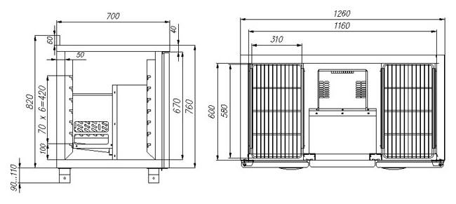 • Динамическая система охлаждения — равномерное распределение холода по всему объему стола.
