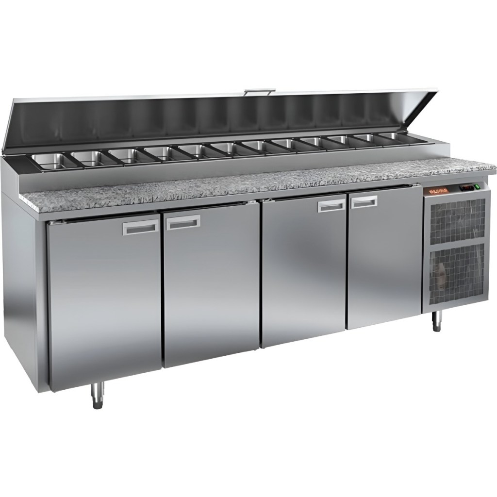 Каталог оборудования Холодильное оборудованиеСтолы охлаждаемыеСтолы холодильные для пиццыСтол холодильный для пиццы HiCold PZ1-1111GN (1/3) камень Стол холодильный для пиццы HiCold PZ1-1111GN (1/3) камень Код товара: 064-684 Поделиться: WhatsAppTelegram СравнитьДобавить в КПВ избранное 0 290 061 ₽ В корзину 0 шт Под заказСамовывоз сегодня бесплатно Взять в кредит Купить в лизинг Получить консультацию в Max Описание Характеристики Отзывы 0 Инструкции 2 Стол холодильный для пиццы HiCold PZ1-1111GN (1/3) камень предназначен для профессиональных кухонь ресторанов, кафе и предприятий торговли. Он совмещает просторную рабочую поверхность из камня для раскатки теста и подготовки ингредиентов с охлаждаемым объёмом для кратковременного хранения продуктов и напитков. Такой подход экономит место и ускоряет работу повара — всё необходимое всегда под рукой. Основные особенности: Столешница из камня — устойчива к механическим повреждениям, не впитывает запахи и легко очищается Динамическая система охлаждения для равномерного распределения холода Автоматическая оттайка для бесперебойной работы Электронная панель управления для точной регулировки температуры 4 вместительные полки формата GN 1/1 (размер 530×325 мм) Автоматические доводчики дверей с фиксатором открытого положения Легкозаменяемые магнитные уплотнители для поддержания герметичности Открытая агрегатная часть для удобного обслуживания Регулируемые по высоте ножки для установки по уровню Максимальная глубина гастроёмкостей: 100 мм Глубина рабочей поверхности: 324 мм Толщина столешницы и теплоизоляции: 50 мм Вместимость салат-бара: до 12 гастроёмкостей HICOLD PZ1-1111/GN со столешницей из камня — это прочный, гигиеничный и удобный стол для пиццы, сочетающий рабочую поверхность и холодильный блок. Идеален для интенсивной эксплуатации на профессиональной кухне.Изображение товара, представленного на фото, может отличаться от его фактического вида. Показать все Габаритные размеры2280×700×1000 ммДиапазон рабочей температурыот +2 до +10 °CРасположение агрегатаБоковое Материал столешницыГранитная Тип столаС дверьми Тип двериГлухая Объём660 лТип гастроемкостейGN 1/3 Количество дверей4 штРазмер полки530×325 ммНапряжение220 ВМощность0,48 кВтТип охлажденияДинамическое Тип оттайкиАвтоматическая Габариты в упаковке2380×840×1140 ммВес нетто208 кгВес брутто228 кгБрендHicoldВсе холодильные столы для пиццы Hicold Оставить отзыв Еще никто не оставил отзыв на этот товар Паспорт на HICOLD PZ1-1111GN (1/3).pdfДекларация о соответствии.pdf Ранее просмотрено Под заказ 207 892 ₽ Стол холодильный для пиццы HiCold PZ1-11GN (1/3) камень