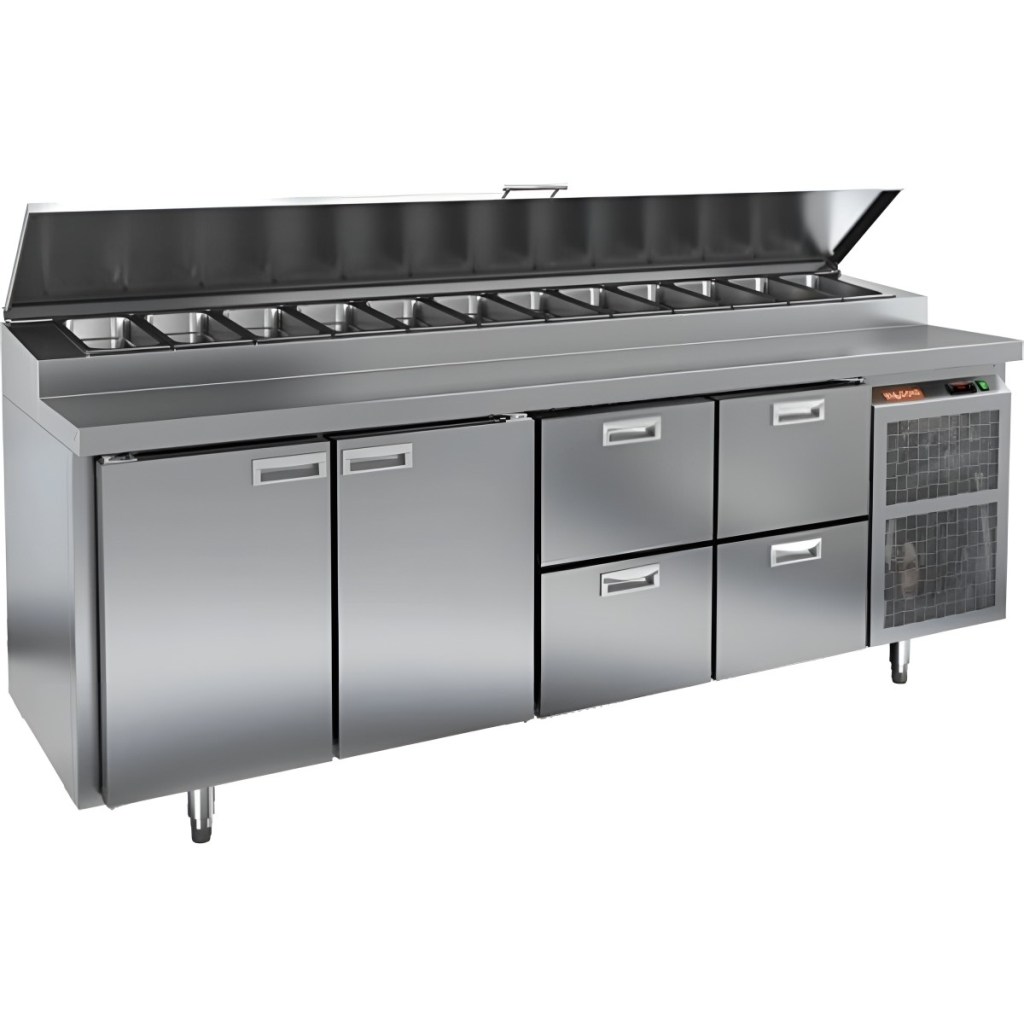 Каталог оборудования Холодильное оборудованиеСтолы охлаждаемыеСтолы холодильные для пиццыСтол холодильный для пиццы HiCold PZ1-1122/GN (1/3H) Стол холодильный для пиццы HiCold PZ1-1122/GN (1/3H) Код товара: 064-694 Поделиться: WhatsAppTelegram СравнитьДобавить в КПВ избранное 0 311 842 ₽ В корзину 0 шт Под заказСамовывоз сегодня бесплатно Взять в кредит Купить в лизинг Получить консультацию в WhatsApp Описание Характеристики Отзывы 0 Стол холодильный для пиццы HiCold PZ1-1122GN (1/3H) — профессиональное оборудование для ресторанов, кафе и предприятий торговли. Он совмещает рабочую поверхность для раскатки теста и подготовки ингредиентов с охлаждаемым блоком для кратковременного хранения продуктов и напитков. Корпус и столешница выполнены из нержавеющей стали, что гарантирует долговечность и лёгкость ухода. Основные особенности: Динамическая система охлаждения — равномерное распределение холода Автоматическая оттайка — поддержка стабильной работы без наледи Электронная панель управления — точная настройка температуры и режимов 2 вместительные полки формата GN 1/1 4 выдвижных ящика для хранения дополнительных ингредиентов Автоматические доводчики дверей с фиксатором открытого положения — удобство загрузки и выгрузки Легкозаменяемые магнитные уплотнители — поддержание герметичности Открытая агрегатная часть — облегчённый доступ к техническим элементам Регулируемые по высоте ножки — установка по уровню Максимальная глубина гастроёмкостей: 150 мм (крайняя правая — 100 мм) Глубина рабочей поверхности: 324 мм Толщина столешницы и теплоизоляции: 50 мм Вместимость салат-бара: до 12 гастроёмкостей Стол холодильный HiCold PZ1-1122GN (1/3H) — функциональный и удобный стол для пиццы и салатов, совмещающий рабочую поверхность, охлаждаемый блок, полки и ящики для хранения. Разная глубина гастроёмкостей и продуманная организация рабочего пространства делают его оптимальным решением для профессиональной кухни.Изображение товара, представленного на фото, может отличаться от его фактического вида. Показать все Габаритные размеры2280×700×1000 ммДиапазон рабочей температурыот +2 до +10 °CРасположение агрегатаБоковое Материал столешницыНержавеющая Тип столаС дверьми и ящиками Тип двериГлухая Объём660 лТип гастроемкостейGN 1/3 Количество дверей2 штКоличество ящиков4 штРазмер полки530×325 ммНапряжение220 ВМощность0,73 кВтТип охлажденияДинамическое Тип оттайкиАвтоматическая Габариты в упаковке2420×850×1080 ммВес нетто208 кгВес брутто228 кгБрендHicoldВсе холодильные столы для пиццы HicoldВсе нержавеющие холодильные столы для пиццы Оставить отзыв Еще никто не оставил отзыв на этот товар Ранее просмотрено Под заказ 260 272 ₽ Стол холодильный для пиццы HiCold PZ1-113GN (1/3H) Под заказ 273 142 ₽ Стол холодильный для пиццы HiCold PZ1-1111GN (1/3) M Под заказ 206 541 ₽ Стол холодильный для пиццы HiCold PZ1-11GN (1/3) М Под заказ 250 822 ₽ Стол холодильный для пиццы HiCold PZE1-1112/GN (1/3) Под заказ 345 321 ₽ Стол холодильный для пиццы HiCold PZ3-1122/GN камень Под заказ 306 171 ₽ Стол холодильный для пиццы HiCold PZ1-222GN (1/3H)