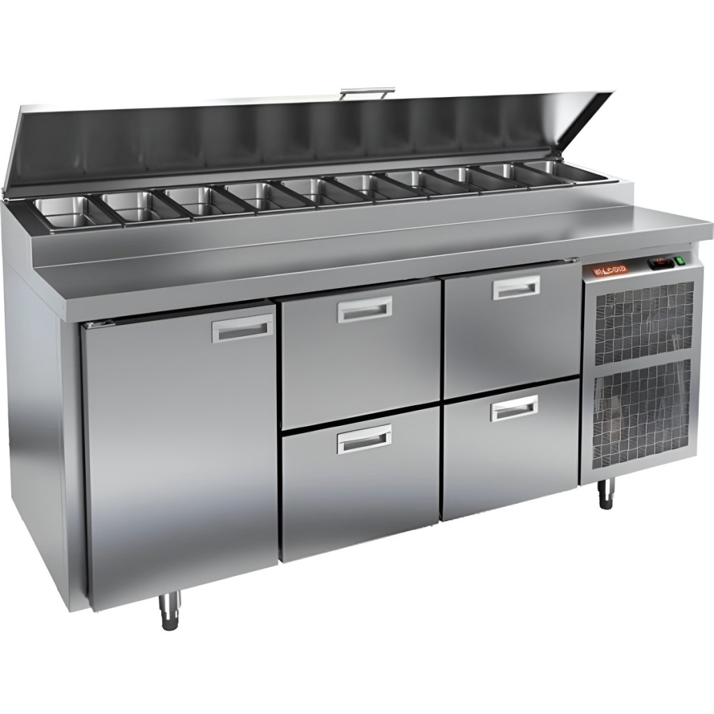 Каталог оборудования Холодильное оборудованиеСтолы охлаждаемыеСтолы холодильные для пиццыСтол холодильный для пиццы HiCold PZ1-122N (1/3) Стол холодильный для пиццы HiCold PZ1-122N (1/3) Код товара: 064-709 Поделиться: WhatsAppTelegram СравнитьДобавить в КПВ избранное 0 275 572 ₽ В корзину 0 шт Под заказСамовывоз сегодня бесплатно Взять в кредит Купить в лизинг Получить консультацию в WhatsApp Описание Характеристики Отзывы 0 Стол холодильный для пиццы HiCold PZ1-122GN (1/3) — профессиональное оборудование для предприятий общественного питания и торговли. Он сочетает рабочую поверхность для раскатки теста и подготовки ингредиентов с охлаждаемым блоком для кратковременного хранения скоропортящихся продуктов и напитков. Такое решение обеспечивает максимальное удобство — все необходимые компоненты всегда находятся под рукой. Корпус и столешница выполнены из нержавеющей стали, что гарантирует долговечность, устойчивость к повреждениям и лёгкость ухода. Основные особенности: Нержавеющая столешница и корпус — прочность, гигиеничность и лёгкость очистки Динамическая система охлаждения — равномерное распределение холода Автоматическая оттайка — стабильная работа без образования наледи Электронная панель управления — точная настройка температуры 1 дверца и 4 выдвижных ящика — удобная организация внутреннего пространства Автоматические доводчики дверцы и ящиков — комфорт при работе Легкозаменяемые магнитные уплотнители — поддержание герметичности Открытая агрегатная часть — лёгкий доступ для обслуживания Регулируемые по высоте ножки — установка на неровных поверхностях Максимальная глубина гастроёмкостей: 100 мм Глубина рабочей поверхности: 324 мм Толщина столешницы и теплоизоляции: 50 мм Вместимость салат-бара: до 10 гастроёмкостей Стол холодильный HiCold PZ1-122GN (1/3) — надёжный и функциональный холодильный стол для пиццы и салатов. Продуманная организация хранения и удобство эксплуатации обеспечивают быстрый доступ к ингредиентам и высокую производительность на профессиональной кухне.Изображение товара, представленного на фото, может отличаться от его фактического вида. Показать все Габаритные размеры1835×700×1000 ммДиапазон рабочей температурыот +2 до +10 °CРасположение агрегатаБоковое Материал столешницыНержавеющая Тип столаС дверьми и ящиками Тип двериГлухая Объём505 лТип гастроемкостейGN 1/3 Количество дверей1 штКоличество ящиков4 штРазмер полки530×325 ммНапряжение220 ВМощность0,5 кВтТип охлажденияДинамическое Тип оттайкиАвтоматическая Габариты в упаковке2000×850×1140 ммВес нетто172 кгВес брутто200 кгБрендHicoldВсе холодильные столы для пиццы HicoldВсе нержавеющие холодильные столы для пиццы Оставить отзыв Еще никто не оставил отзыв на этот товар Ранее просмотрено Под заказ 434 242 ₽ Стол холодильный для пиццы HiCold PZ2-3333GN (1/6) Под заказ 278 361 ₽ Стол холодильный для пиццы HiCold PZE1-222GN (1/3) Под заказ 229 941 ₽ Стол холодильный для пиццы HiCold PZ1-13/GN (1/3) Под заказ 247 761 ₽ Стол холодильный для пиццы HiCold PZE2-221/GN (1/6H) Под заказ 217 161 ₽ Стол холодильный для пиццы HiCold PZE2-211/GN (1/6H) Под заказ 244 971 ₽ Стол холодильный для пиццы HiCold PZ1-112GN (1/3H) Под заказ 342 622 ₽ Стол холодильный для пиццы HiCold PZE1-2222GN (1/3)