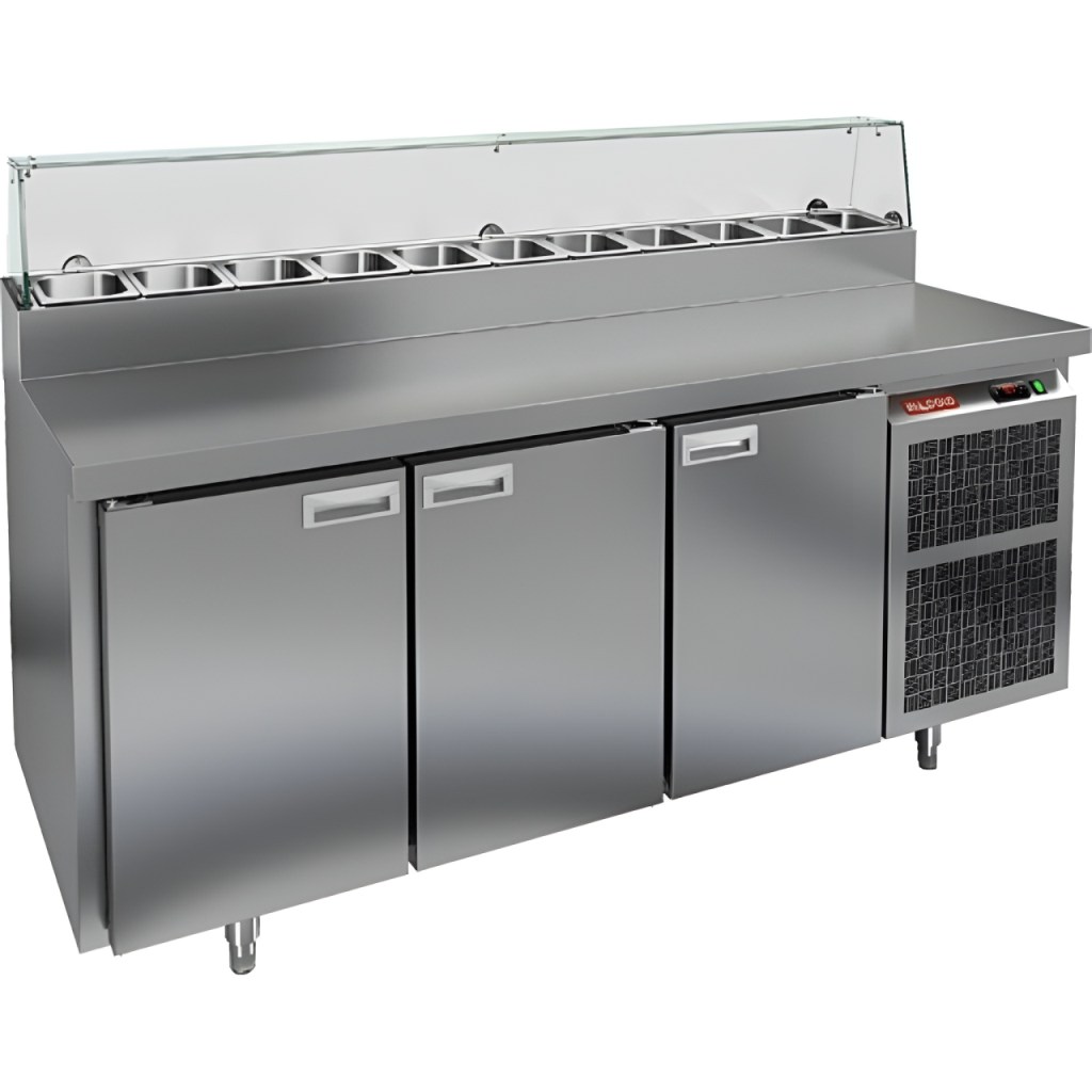 Каталог оборудования Холодильное оборудованиеСтолы охлаждаемыеСтолы холодильные для пиццыСтол холодильный для пиццы HiCold PZ2-111GN (1/6) стекло Стол холодильный для пиццы HiCold PZ2-111GN (1/6) стекло Код товара: 064-740 Поделиться: WhatsAppTelegram СравнитьДобавить в КПВ избранное 0 224 181 ₽ В корзину 0 шт Под заказСамовывоз сегодня бесплатно Взять в кредит Купить в лизинг Получить консультацию в WhatsApp Описание Характеристики Отзывы 0 Инструкции 2 Стол холодильный для пиццы HiCold PZ2-111GN (1/6) стекло предназначен для использования на предприятиях общественного питания и торговли. Он совмещает рабочую поверхность для раскатки теста и подготовки ингредиентов с охлаждаемым блоком для кратковременного хранения скоропортящихся продуктов и напитков. Стеклянный купол защищает ингредиенты от внешних воздействий и обеспечивает их наглядную демонстрацию, что удобно для использования в салат-барах. Корпус и рабочая столешница выполнены из нержавеющей стали, что гарантирует долговечность, устойчивость к повреждениям и лёгкость ухода. Основные особенности: Нержавеющая столешница и корпус — прочность, долговечность и лёгкость очистки Стеклянный купол — защита ингредиентов и визуальная демонстрация продуктов Динамическая система охлаждения — равномерное распределение холода по всему объёму Автоматическая оттайка — стабильная работа без наледи Электронная панель управления — точная настройка температуры 3 вместительные внутренние полки формата GN 1/1 (размер 530×325 мм) — удобное хранение ингредиентов Автоматические доводчики дверей с фиксатором открытого положения — комфортная эксплуатация Легкозаменяемые магнитные уплотнители — поддержание герметичности Открытая агрегатная часть — лёгкий доступ к техническим элементам Регулируемые по высоте ножки — установка на неровных поверхностях Максимальная глубина гастроёмкостей: 100 мм Глубина рабочей поверхности: 486 мм Толщина столешницы: 50 мм Толщина теплоизоляции: 50 мм Вместимость салат-бара: до 11 гастроёмкостей Стол холодильный HiCold PZ2-111GN (1/6) стекло — надёжный и функциональный стол для пиццы и салатов. Он обеспечивает удобство работы, быстрый доступ к ингредиентам, эффективное охлаждение продуктов и наглядное их представление, что делает его оптимальным решением для профессиональных кухонь и предприятий общественного питания. Изображение товара, представленного на фото, может отличаться от его фактического вида. Показать все Габаритные размеры1835×700×1000 ммДиапазон рабочей температурыот +2 до +10 °CРасположение агрегатаБоковое Материал столешницыНержавеющая Тип столаС дверьми Тип двериГлухая Объём505 лТип гастроемкостейGN 1/6 Количество дверей3 штРазмер полки530×325 ммНапряжение220 ВМощность0,46 кВтТип охлажденияДинамическое Тип оттайкиАвтоматическая СтолешницаСо стеклянным куполом Габариты в упаковке2000×850×1080 ммВес нетто172 кгВес брутто248 кгБрендHicoldВсе холодильные столы для пиццы HicoldВсе нержавеющие холодильные столы для пиццы Оставить отзыв Еще никто не оставил отзыв на этот товар Паспорт на HICOLD PZ2-111GN.pdfДекларация о соответствии.pdf Ранее просмотрено Под заказ 358 552 ₽ Стол холодильный для пиццы HiCold PZ3-133/GN камень