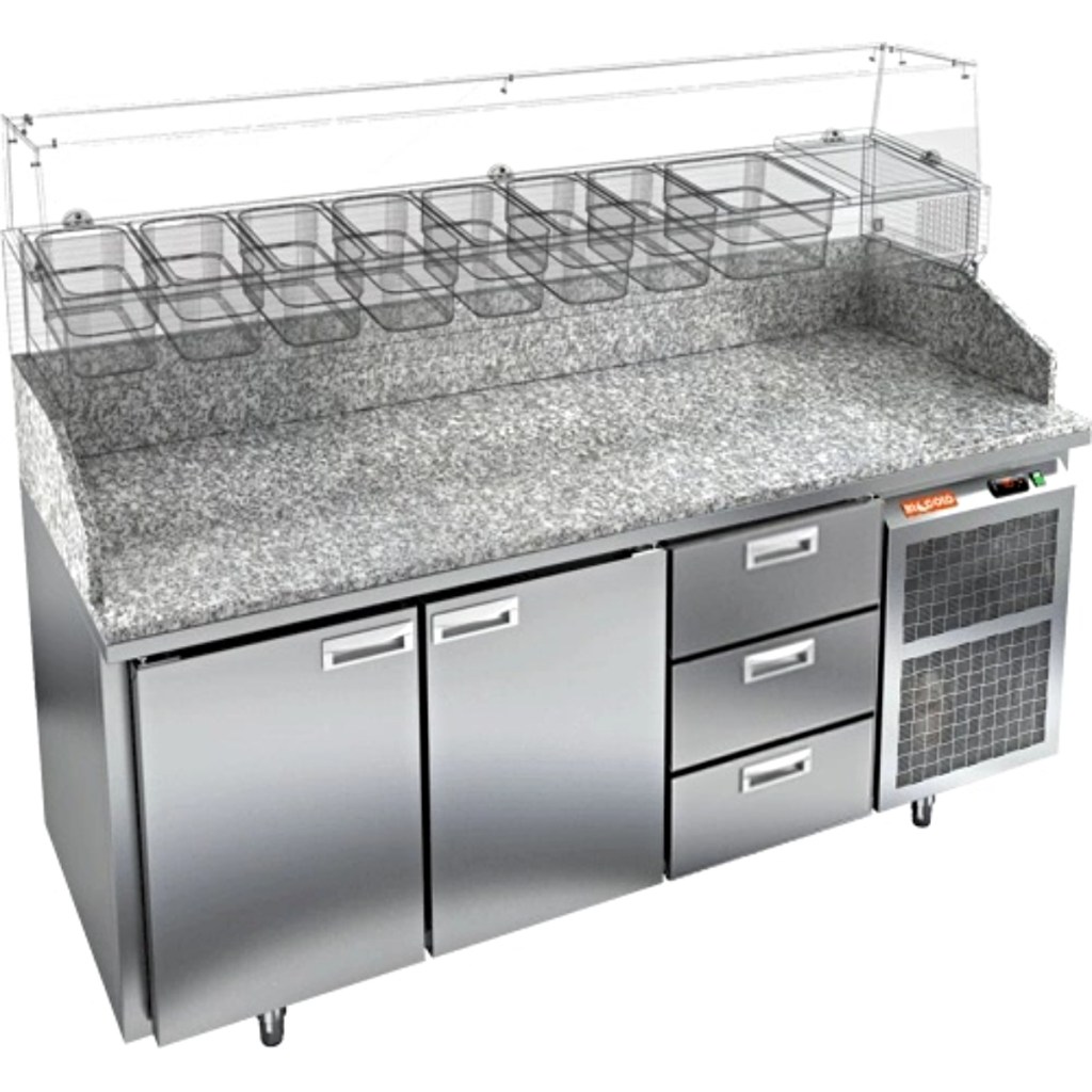 Каталог оборудования Холодильное оборудованиеСтолы охлаждаемыеСтолы холодильные для пиццыСтол холодильный для пиццы HiCold PZ3-113/GN камень Стол холодильный для пиццы HiCold PZ3-113/GN камень Код товара: 065-007 Поделиться: WhatsAppTelegram СравнитьДобавить в КПВ избранное 0 312 652 ₽ В корзину 0 шт Под заказСамовывоз сегодня бесплатно Взять в кредит Купить в лизинг Получить консультацию в WhatsApp Описание Характеристики Отзывы 0 Стол холодильный для пиццы HiCold PZE3-113/GN камень предназначен для использования в пиццериях, кафе, магазинах и ресторанах. Он идеально подходит для раскатки теста, подготовки ингредиентов и кратковременного хранения скоропортящихся продуктов. Витрина приобретается отдельно. Стол сочетает корпус из нержавеющей стали и гранитную столешницу, которая устойчива к механическим и температурным нагрузкам и удобна в работе с тестом. Такая конструкция обеспечивает долговечность, гигиеничность и простоту ухода. Особенности модели: Охлаждение: динамическое — равномерное поддержание температуры Оттайка: автоматическая — удобство и экономия времени Панель управления: электронная — точная настройка температуры Ножки: регулируемые по высоте — устойчивость на неровной поверхности Двери: 2 глухие двери с автоматическими доводчиками и фиксатором открытого положения Ящики: 3 выдвижных ящика — удобное хранение ингредиентов Уплотнители: легкозаменяемые магнитные — герметичность и простота обслуживания Толщина теплоизоляции: 50 мм — сохранение холода и энергоэффективность Рабочая поверхность: глубина 680 мм — удобство работы HiCold PZE3-113/GN камень— это надёжный и функциональный холодильный стол для пиццы, который сочетает прочность, эргономику и эффективное охлаждение. Благодаря гранитной столешнице, корпусу из нержавеющей стали, двум глухим дверям и двум выдвижным ящикам он станет универсальным решением для профессиональной кухни. Изображение товара, представленного на фото, может отличаться от его фактического вида. Показать все Габаритные размеры1835×700×1050 ммДиапазон рабочей температурыот +2 до +10 °CРасположение агрегатаБоковое Материал столешницыГранитная Тип столаС дверьми и ящиками Тип двериГлухая Объём505 лКоличество дверей2 штКоличество ящиков3 штРазмер полки530×325 ммНапряжение220 ВМощность0,5 кВтТип охлажденияДинамическое Тип оттайкиАвтоматическая Габариты в упаковке2000×850×1180 ммВес нетто172 кгВес брутто192 кгБрендHicoldВсе холодильные столы для пиццы HicoldВсе нержавеющие холодильные столы для пиццы Оставить отзыв Еще никто не оставил отзыв на этот товар Ранее просмотрено Под заказ 191 782 ₽ Стол холодильный для пиццы HiCold PZE2-111/GN (1/6H) З Под заказ 337 492 ₽ Стол холодильный для пиццы HiCold PZE3-222/SN камень Под заказ 358 552 ₽ Стол холодильный для пиццы HiCold PZ3-222/GN камень