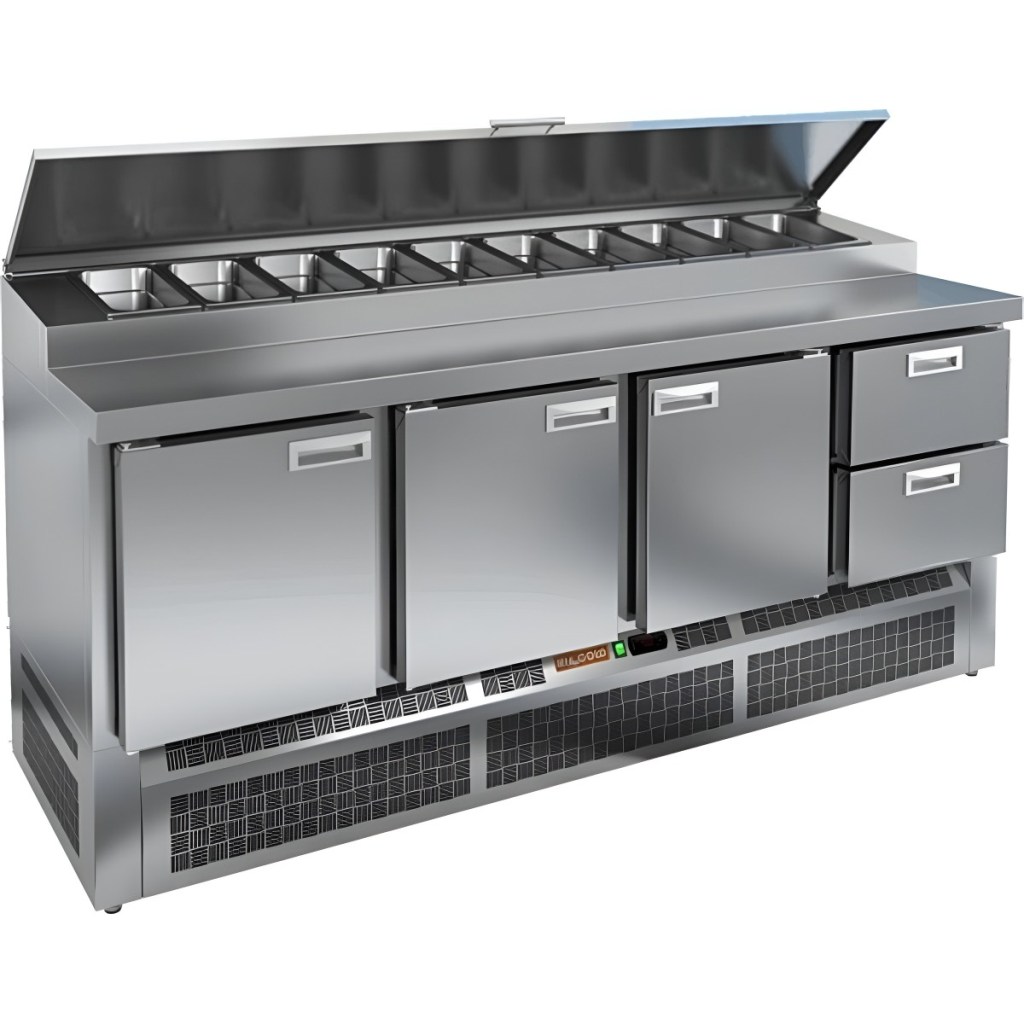 Каталог оборудования Холодильное оборудованиеСтолы охлаждаемыеСтолы холодильные для пиццыСтол холодильный для пиццы HiCold PZE1-1112/GN (1/3) Стол холодильный для пиццы HiCold PZE1-1112/GN (1/3) Код товара: 064-734 Поделиться: WhatsAppTelegram СравнитьДобавить в КПВ избранное 0 250 822 ₽ В корзину 0 шт Под заказСамовывоз сегодня бесплатно Взять в кредит Купить в лизинг Получить консультацию в WhatsApp Описание Характеристики Отзывы 0 Стол холодильный для пиццы HiCold PZE1-1112/GN (1/3) — профессиональное оборудование для предприятий общественного питания и торговли. Он сочетает рабочую поверхность для раскатки теста и подготовки ингредиентов с охлаждаемым блоком для кратковременного хранения скоропортящихся продуктов и напитков. Корпус выполнен из нержавеющей стали, а рабочая столешница — из камня, что обеспечивает долговечность, прочность и удобство при работе с продуктами. Основные особенности: Каменная столешница и корпус из нержавеющей стали — долговечность, устойчивость к повреждениям и лёгкость ухода Динамическая система охлаждения — равномерное распределение холода по всему объёму Автоматическая оттайка — стабильная работа без образования наледи Электронная панель управления — точная настройка температуры 3 дверцы и 2 выдвижных ящика — удобная организация внутреннего пространства Автоматические доводчики дверей и ящиков — комфорт при работе Легкозаменяемые магнитные уплотнители — поддержание герметичности Открытая агрегатная часть — лёгкий доступ к техническим элементам Регулируемые по высоте ножки — установка на неровных поверхностях Максимальная глубина гастроёмкостей: 100 мм Глубина рабочей поверхности: 324 мм Толщина столешницы: 50 мм Толщина теплоизоляции: 50 мм Вместимость салат-бара: до 10 гастроёмкостей Стол холодильный HiCold PZE1-1112/GN (1/3) — надёжный и функциональный холодильный стол для пиццы и салатов. Продуманная организация хранения и удобство эксплуатации обеспечивают быстрый доступ к ингредиентам и высокую производительность на профессиональной кухне.Изображение товара, представленного на фото, может отличаться от его фактического вида. Показать все Габаритные размеры1970×700×990 ммДиапазон рабочей температурыот +2 до +10 °CРасположение агрегатаНижнее Материал столешницыНержавеющая Тип столаС дверьми и ящиками Тип двериГлухая Объём505 лТип гастроемкостейGN 1/3 Количество дверей3 штКоличество ящиков2 штРазмер полки530×325 ммНапряжение220 ВМощность0,5 кВтТип охлажденияДинамическое Тип оттайкиАвтоматическая Габариты в упаковке1680×840×1170 ммВес нетто150 кгВес брутто210 кгБрендHicoldВсе холодильные столы для пиццы HicoldВсе нержавеющие холодильные столы для пиццы Оставить отзыв Еще никто не оставил отзыв на этот товар Ранее просмотрено Под заказ 345 321 ₽ Стол холодильный для пиццы HiCold PZ3-1122/GN камень Под заказ 306 171 ₽ Стол холодильный для пиццы HiCold PZ1-222GN (1/3H)