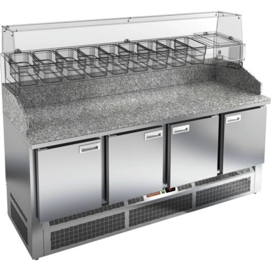 HiCold PZE3-1111/GN З камень— профессиональный стол для пиццы, сочетающий в себе эргономику, долговечность и удобство, что делает его отличным выбором для интенсивной работы на кухне.