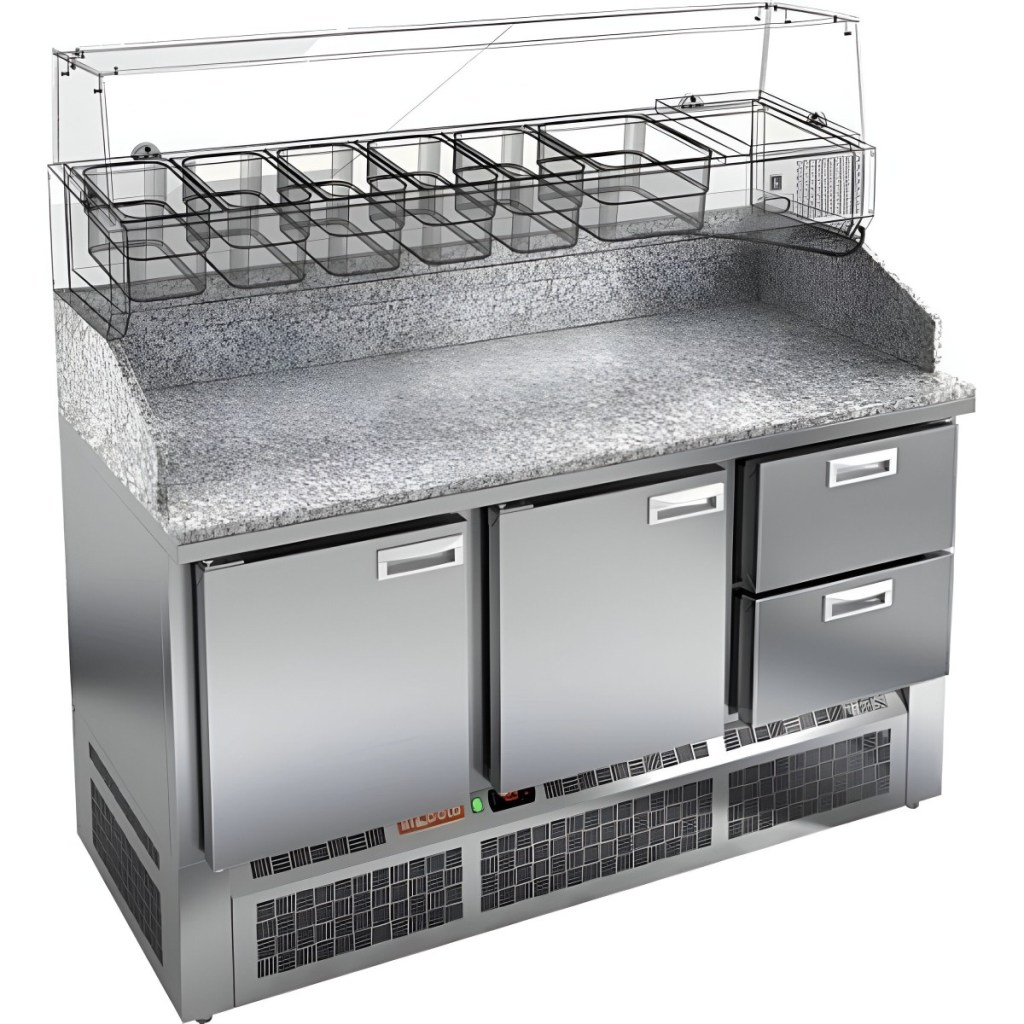 Каталог оборудования Холодильное оборудованиеСтолы охлаждаемыеСтолы холодильные для пиццыСтол холодильный для пиццы HiCold PZE3-112/SN камень Стол холодильный для пиццы HiCold PZE3-112/SN камень Код товара: 064-989 Поделиться: WhatsAppTelegram СравнитьДобавить в КПВ избранное 0 276 291 ₽ В корзину 0 шт Под заказСамовывоз сегодня бесплатно Взять в кредит Купить в лизинг Получить консультацию в WhatsApp Описание Характеристики Отзывы 0 Стол холодильный для пиццы HiCold PZE3-112/SN камень предназначен для использования в пиццериях, кафе, магазинах и ресторанах. Он идеально подходит для раскатки теста, подготовки ингредиентов для пиццы и кратковременного хранения скоропортящихся продуктов. Витрина приобретается отдельно. Особенности модели: Корпус: нержавеющая сталь — прочный, гигиеничный и долговечный Столешница: гранит — устойчива к царапинам, ударам и температурным нагрузкам Охлаждение: динамическое для равномерного поддержания температуры Оттайка: автоматическая — удобство и экономия времени Панель управления: электронная — точная настройка температуры Ножки: регулируемые по высоте — устойчивость на неровной поверхности Двери: автоматические доводчики с фиксатором открытого положения Уплотнители: легкозаменяемые магнитные — герметичность и простота обслуживания Толщина теплоизоляции: 50 мм — сохранение холода и энергоэффективность Рабочая поверхность: глубина 580 мм — удобство работы Полки: 2 полки размером 430×325 мм (GN 1/1) — максимальная вместимость HiCold PZE3-112/SN камень— надёжный и функциональный холодильный стол с гранитной столешницей, который сочетает прочность, удобство в работе и эффективное охлаждение продуктов. Он станет универсальным решением для профессиональной кухни, где важны скорость, организация и сохранение свежести ингредиентов. Изображение товара, представленного на фото, может отличаться от его фактического вида. Показать все Габаритные размеры1485×600×1050 ммДиапазон рабочей температурыот +2 до +10 °CРасположение агрегатаНижнее Материал столешницыГранитная Тип столаС дверьми и ящиками Тип двериГлухая Объём320 лКоличество дверей2 штКоличество ящиков2 штРазмер полки430×325 ммНапряжение220 ВМощность0,22 кВтТип охлажденияДинамическое Тип оттайкиАвтоматическая Габариты в упаковке1700×750×1280 ммВес нетто155 кгВес брутто175 кгБрендHicoldВсе холодильные столы для пиццы HicoldВсе нержавеющие холодильные столы для пиццы Оставить отзыв Еще никто не оставил отзыв на этот товар Ранее просмотрено Под заказ 76 985 ₽ Витрина холодильная МХМ Илеть Cube ВХС-1,5 динамика Под заказ 343 342 ₽ Стол холодильный для пиццы HiCold PZE3-222/GN камень