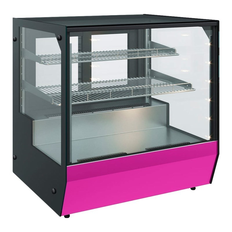 Передняя панель может быть окрашена в один из фирменных цветов производителя, что позволяет адаптировать витрину под интерьер помещения.